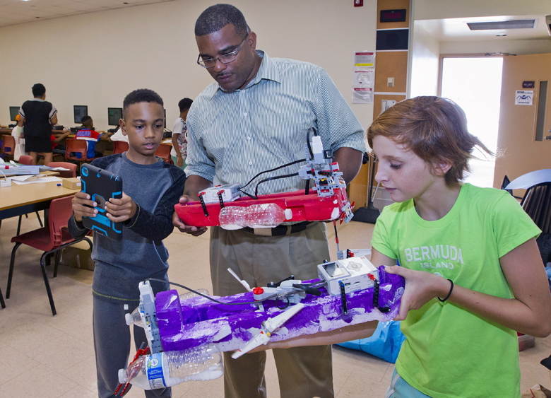 This morning the Minister of Education, the Hon. Diallo Rabain JP,MP visited the Department of Education’s Gifted and Talented Education Programme (GATE) summer Science, Technology, Engineering, Arts and Mathematics (STEAM) Academy for students in Primary 5 through senior school.