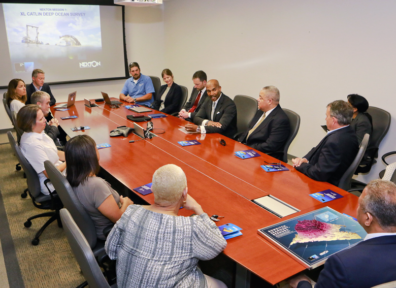 Today the Minister of Home Affairs the Hon. Walton Brown JP MP, as the Minister responsible for the Environment, received the findings of the Nekton Mission I, XL Catlin Deep Ocean Survey in Bermuda.