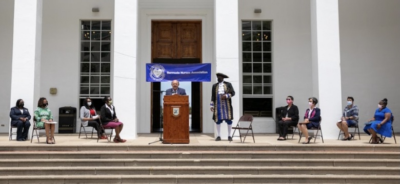 The Bermuda Nurses Association held a proclamation reading to celebrate International Nurses Day on the steps of City Hall today. With social distance restrictions in place, Her Excellency Governor Rena Lalgie, the Minister of Health Kim…