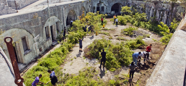 The Minister of Social Development and Sports the Hon. Nandi Outerbridge JP MP was on-hand to assist volunteers with removing some of the overgrown foliage from the site.