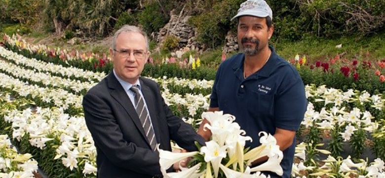 The Governor, Mr John Rankin CMG, participated in the annual picking of Easter Lilies for Her Majesty The Queen.  This year’s Easter Lilies were grown by Manuel DeSilva Jr (pictured with the Governor) on property which his family has farmed…