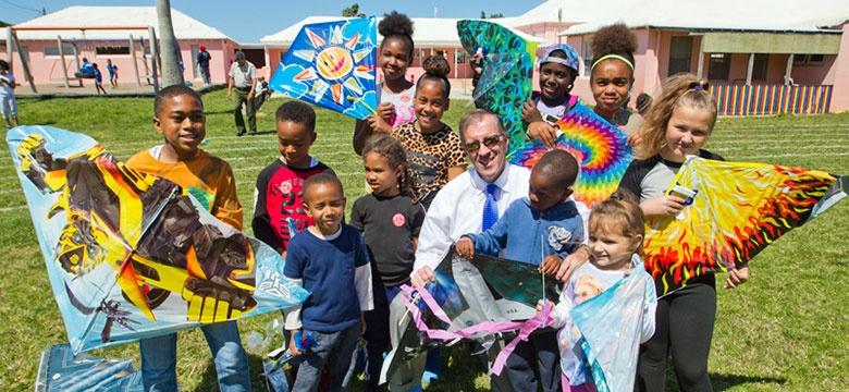 - Press ReleaseEarlier today, Premier the Hon. Michael Dunkley JP MP, and Sen. Jeff Baron visited the Elliot Primary School and participated in their Kite Day. Please see photo attached.