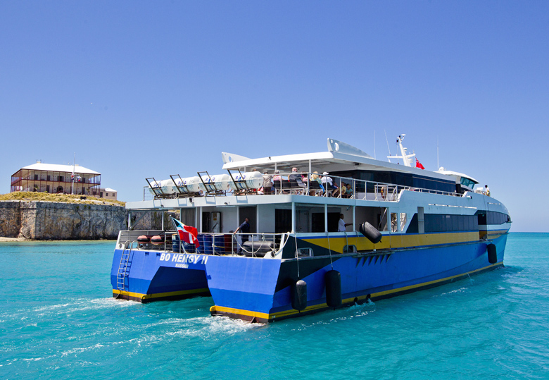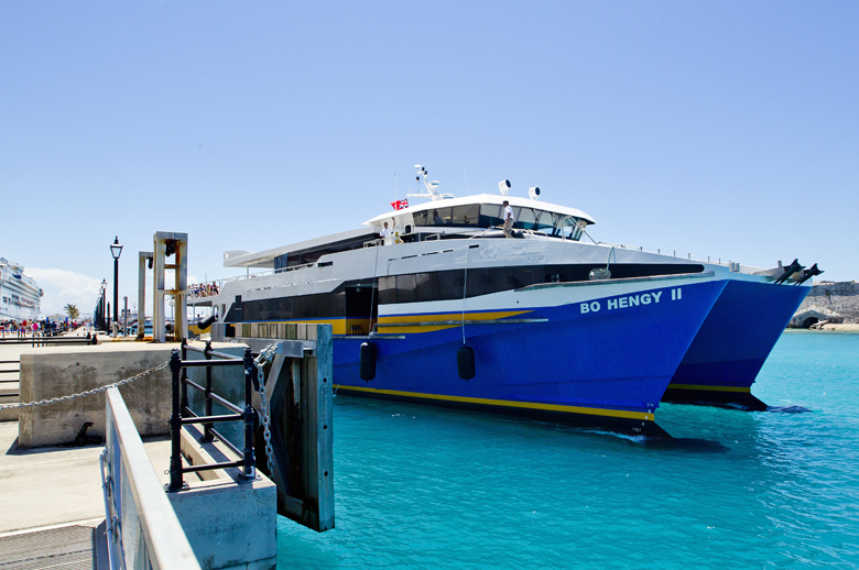 The Bo Hengy II on Monday began providing tender service for NCL cruise ship visitors between the Royal Naval Dockyard and the Town of St. George, under the guidance of a Bermudian crew of five, led by long time mariner, Cruiseport Ferry Management Ltd. CEO and reserve captain Beau Evans.